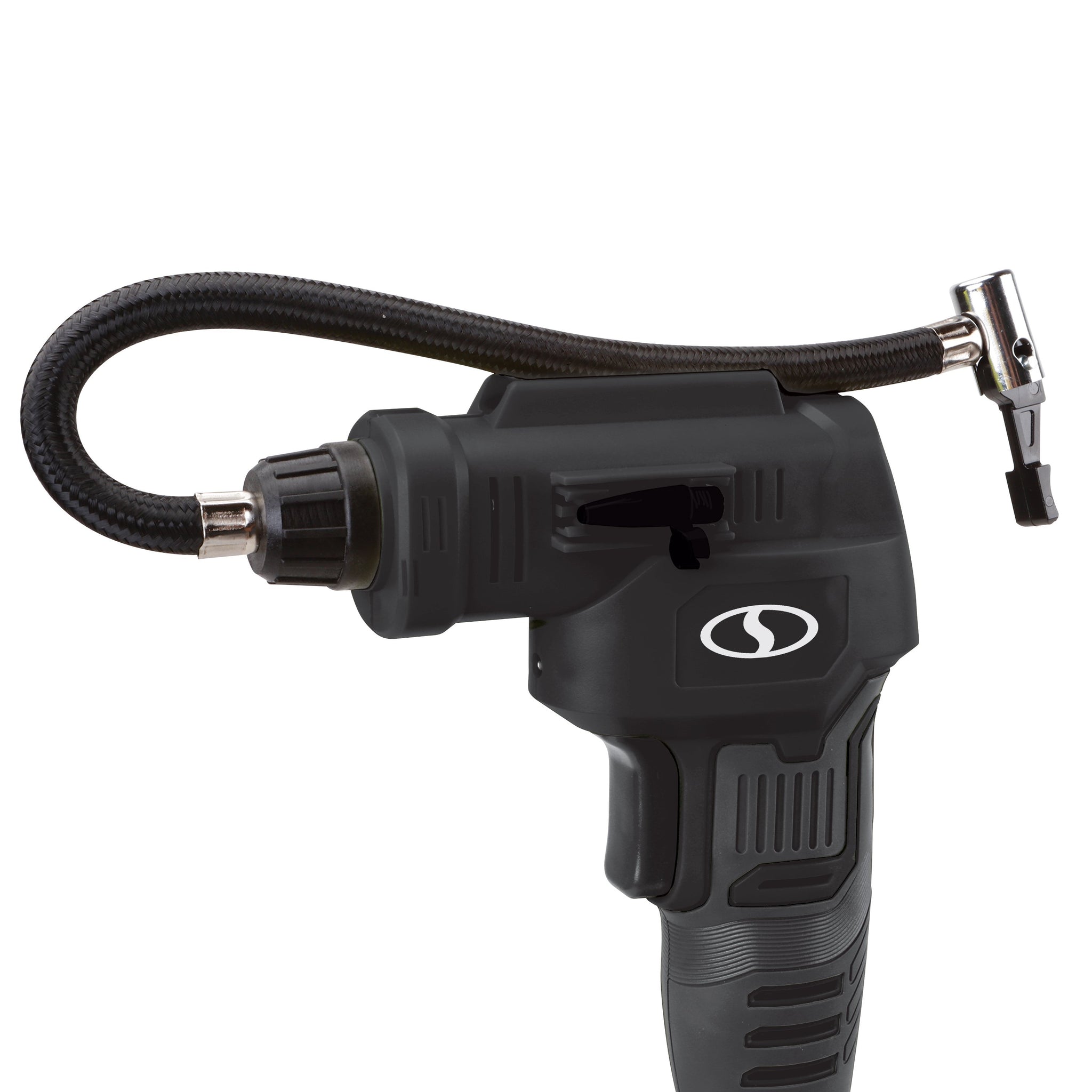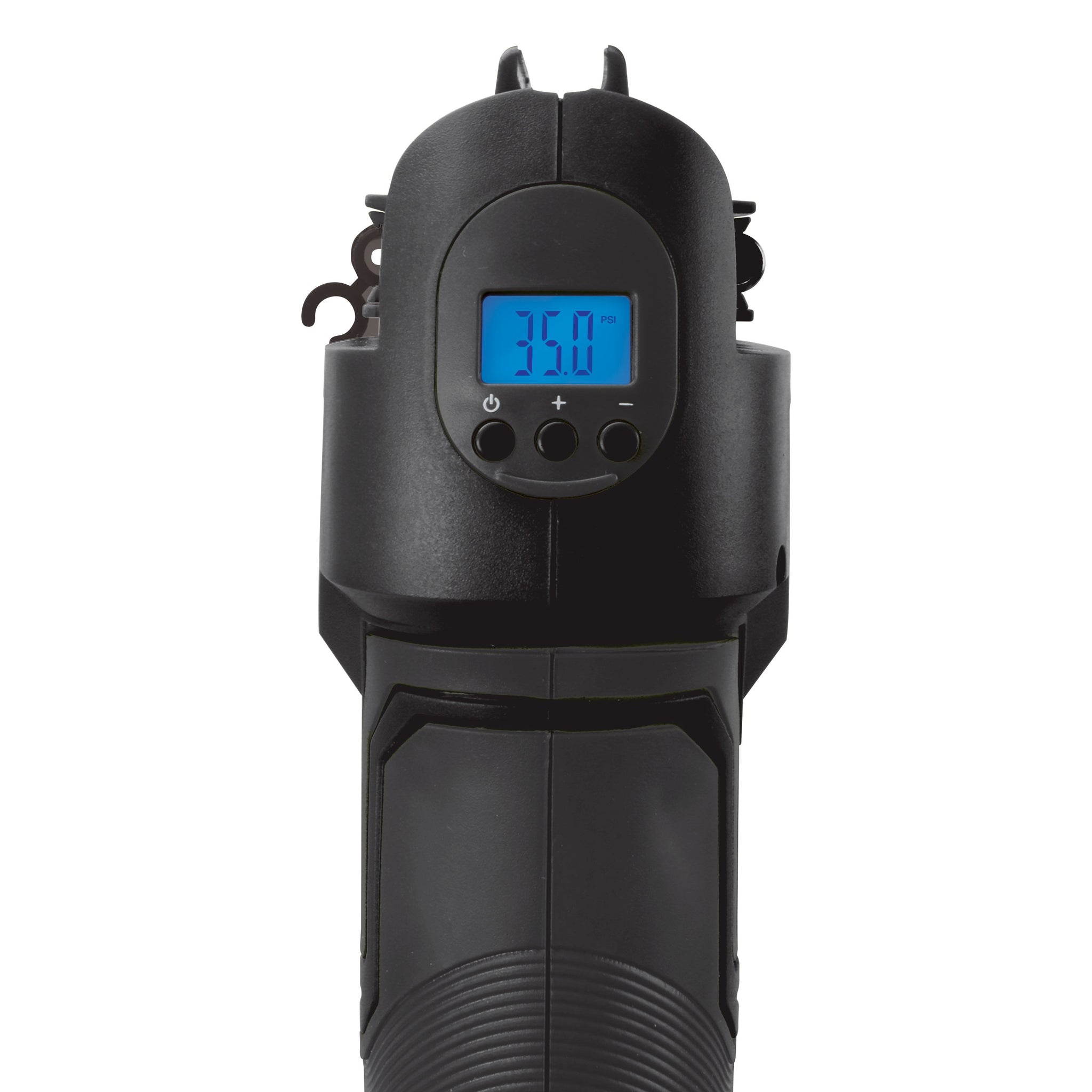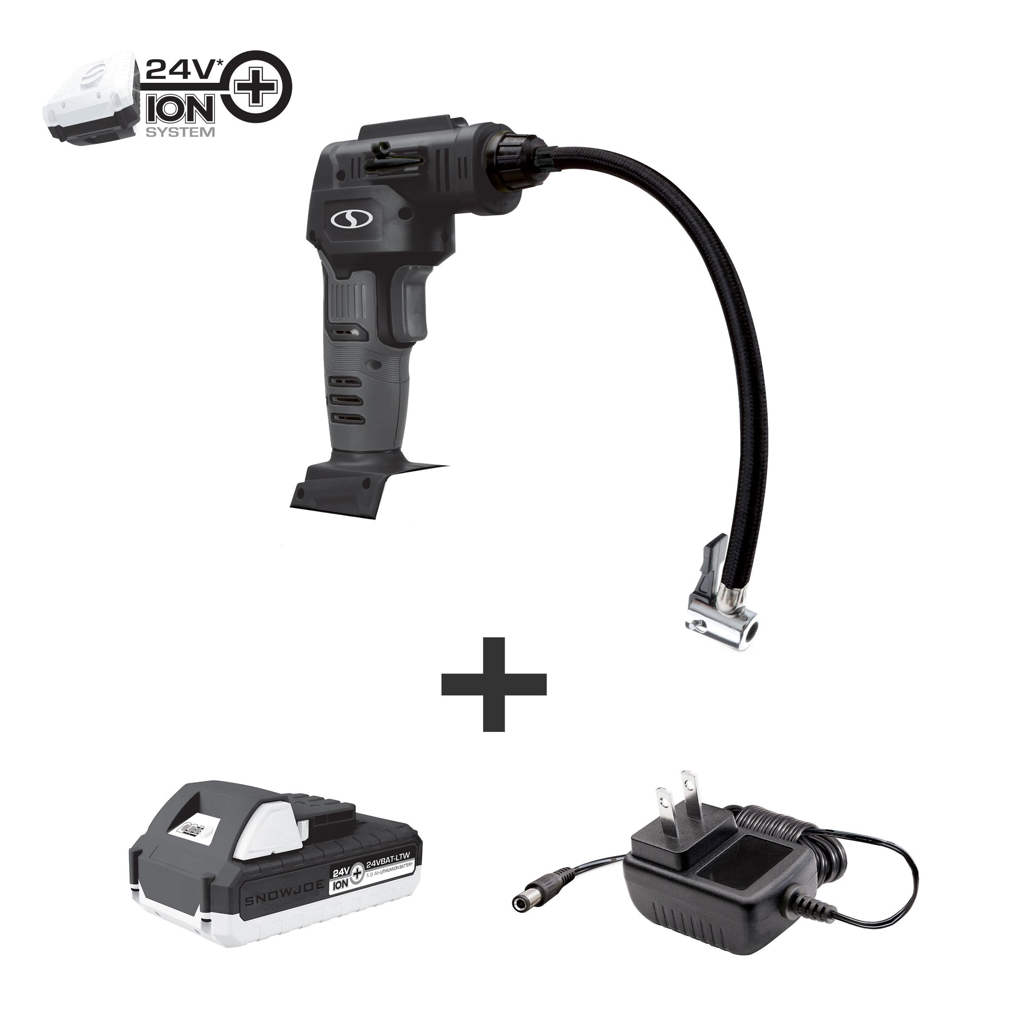 Compact and convenient for camping, or commuting - it’s the power-packed rechargeable pump that’s perfect anywhere power is at a premium -- like at the park, at the pool, or on the road. Keep tires at the perfect pressure, inflate a bike tire, pool float or sport ball in seconds. Simply set the PSI on the digital display and pull the trigger. The 24V-AJC-LTW automatically stops at your preset pressure.