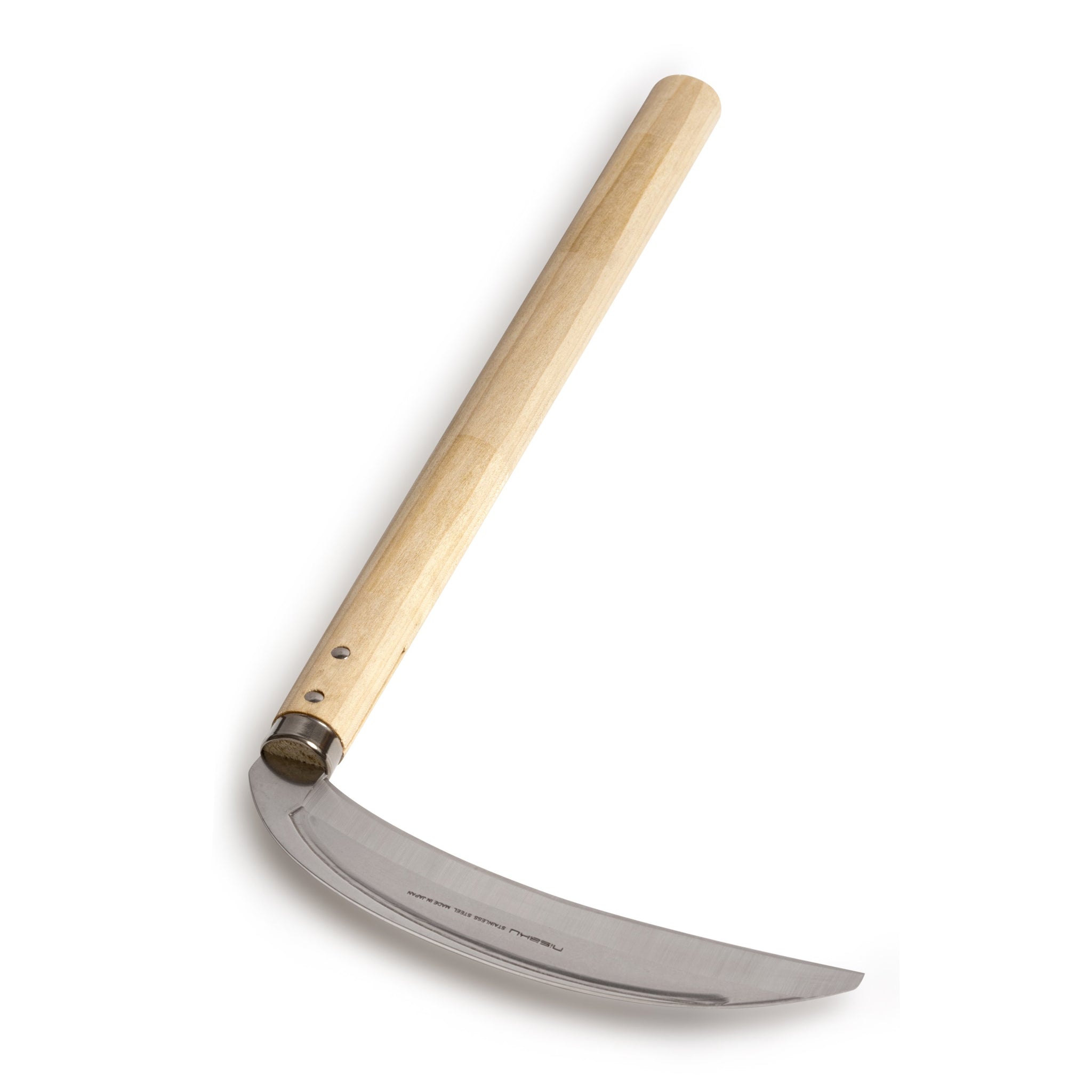 Bring quality and reliability to your garden work with the Nisaku Mikadukigama Grass Sickle. Designed for weeding and cutting tall grasses, this essential tool features a sturdy wooden handle and a stainless steel blade with a precision edge.