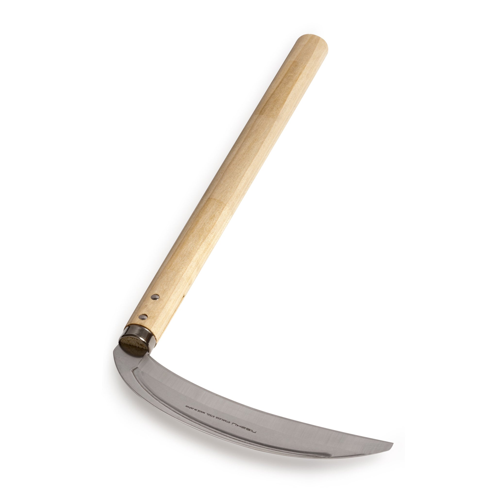 Bring quality and reliability to your garden work with the Nisaku Mikadukigama Grass Sickle. Designed for weeding and cutting tall grasses, this essential tool features a sturdy wooden handle and a stainless steel blade with a precision edge.