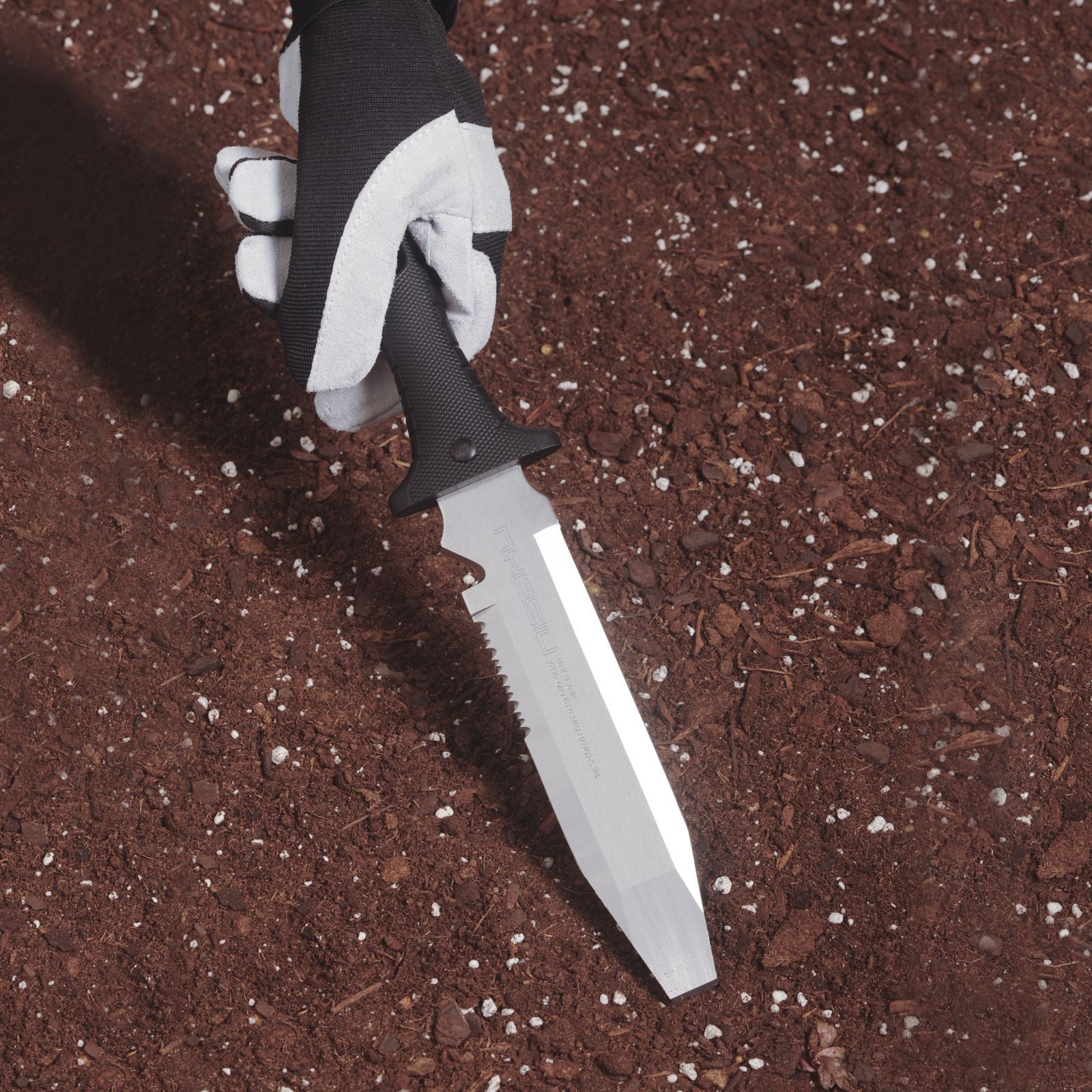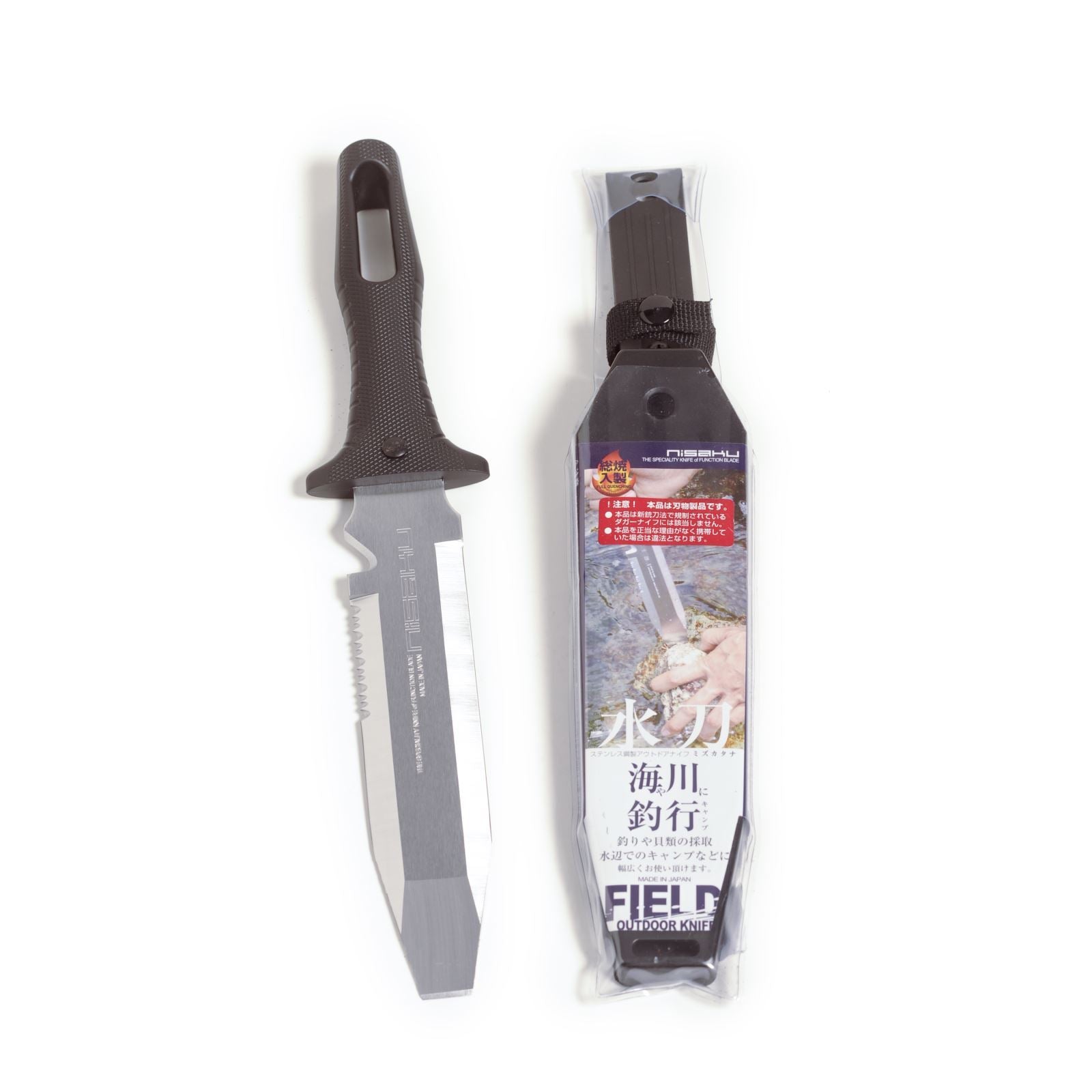 Nisaku Stainless Steel Mizukatana is an excellent multi-functional tool for a wide variety of outdoor applications. The sharp, stainless steel serrated edge cuts through most materials in a single swipe, and showcases a balanced design with a gut hook feature and comfortable grip. The fine edge, and flat tip blade affords ultimate utility for outdoor tasks alike. includes a sheath.