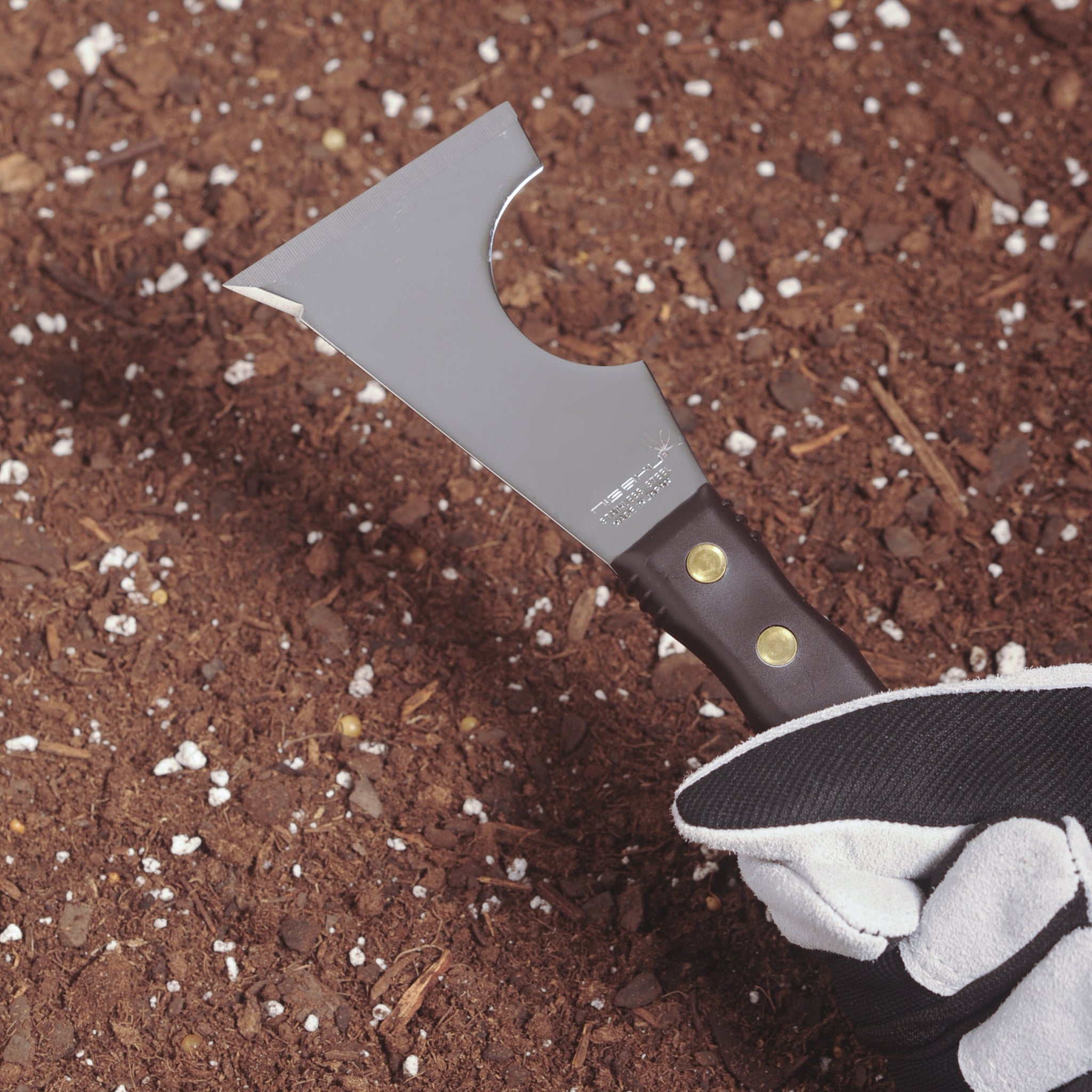 The Nisaku Japanese Stainless Steel scraper knife with hammer end makes it easy to tackle tough stripping and scraping jobs. The molded plastic handle provides strength and flexibility without heavy weight that can make you tiresome and slow you down. It is specially designed with an ultra-sharp Japanese stainless steel blade for smooth and sturdy use every time. Metal hammer end allows for more aggressive scraping action.