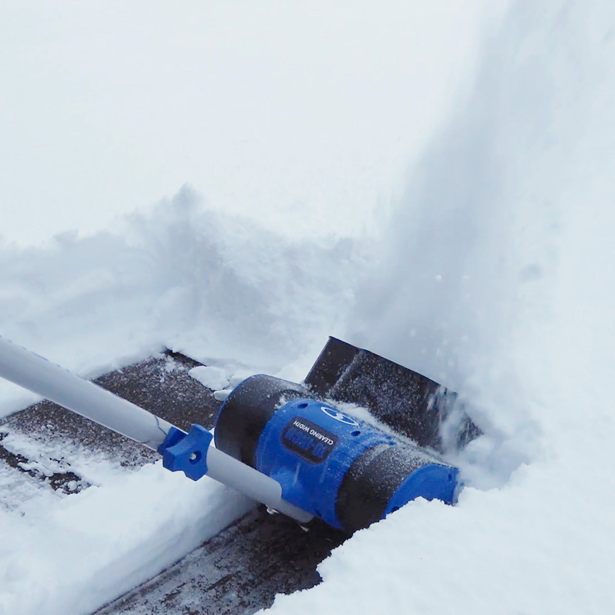 Equipped with a heavy-duty 2-blade paddle auger, SNOW JOE throws snow up to 20 feet away, clearing a 10-inch wide by 6-inch deep path with each pass. And the durable scraper blade at the base of the unit lets you clear right to the ground without damaging your deck or pavement!