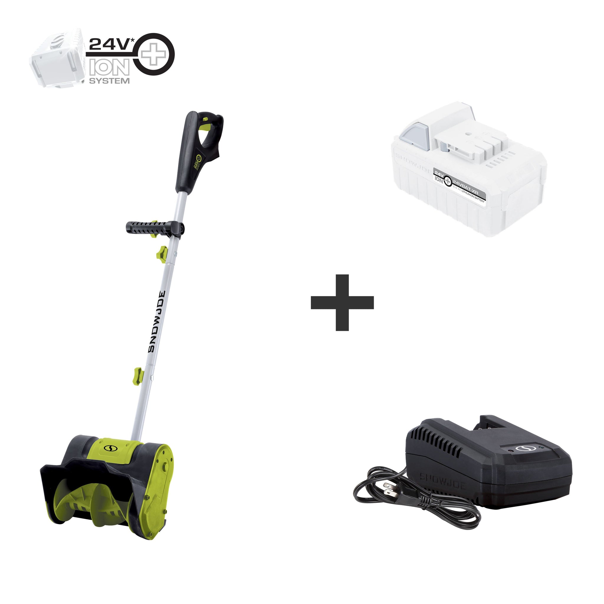Snow Joe 24V-SS10-XR-SJG-RM 24-Volt iON+ Extended Run Time Cordless Snow Shovel Kit | 10-Inch | W/ 5.0-Ah Battery and Charger (Green) (Certified Refurbished)