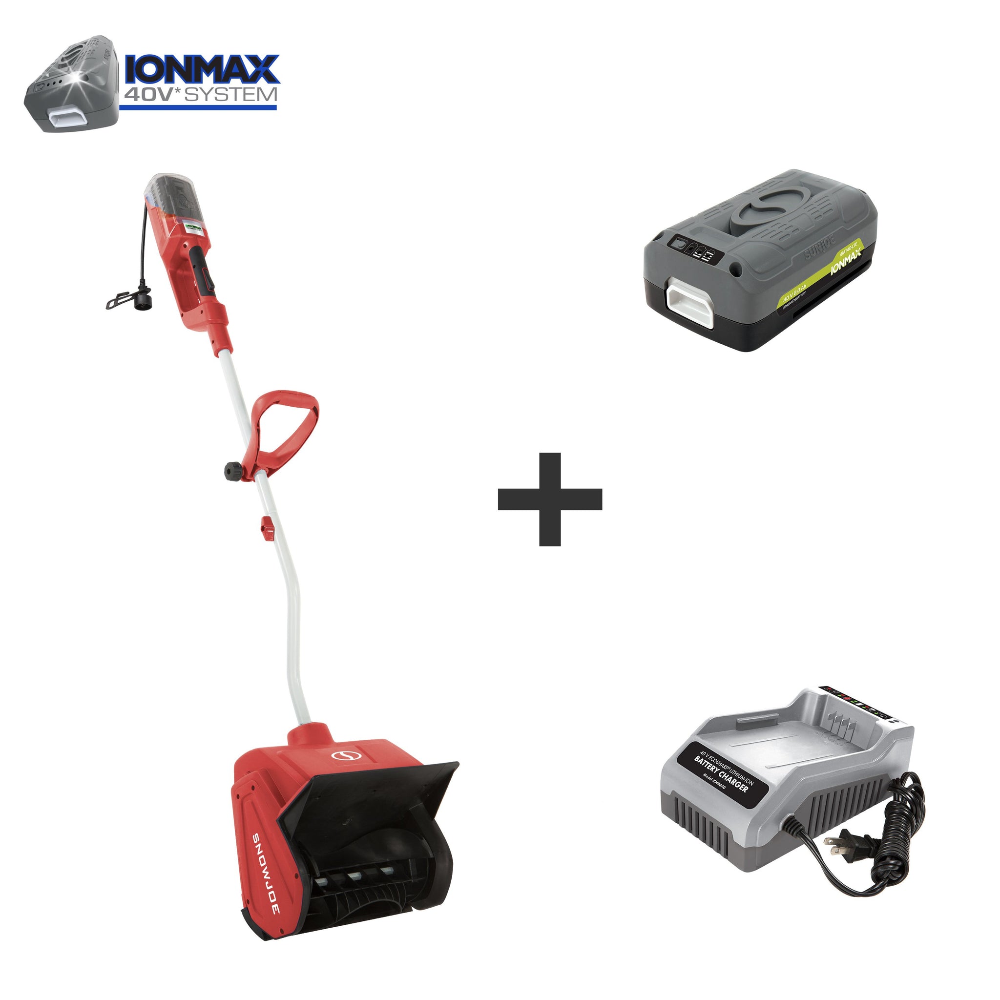 Snow Joe iON13SS-LTE-HYB-RED-RM 40-Volt iONMAX Hybrid Cordless and Electric Cordless Snow Shovel Kit | 13-Inch | W/ 2.0-Ah Battery and Charger (Certified Refurbished) (Red)