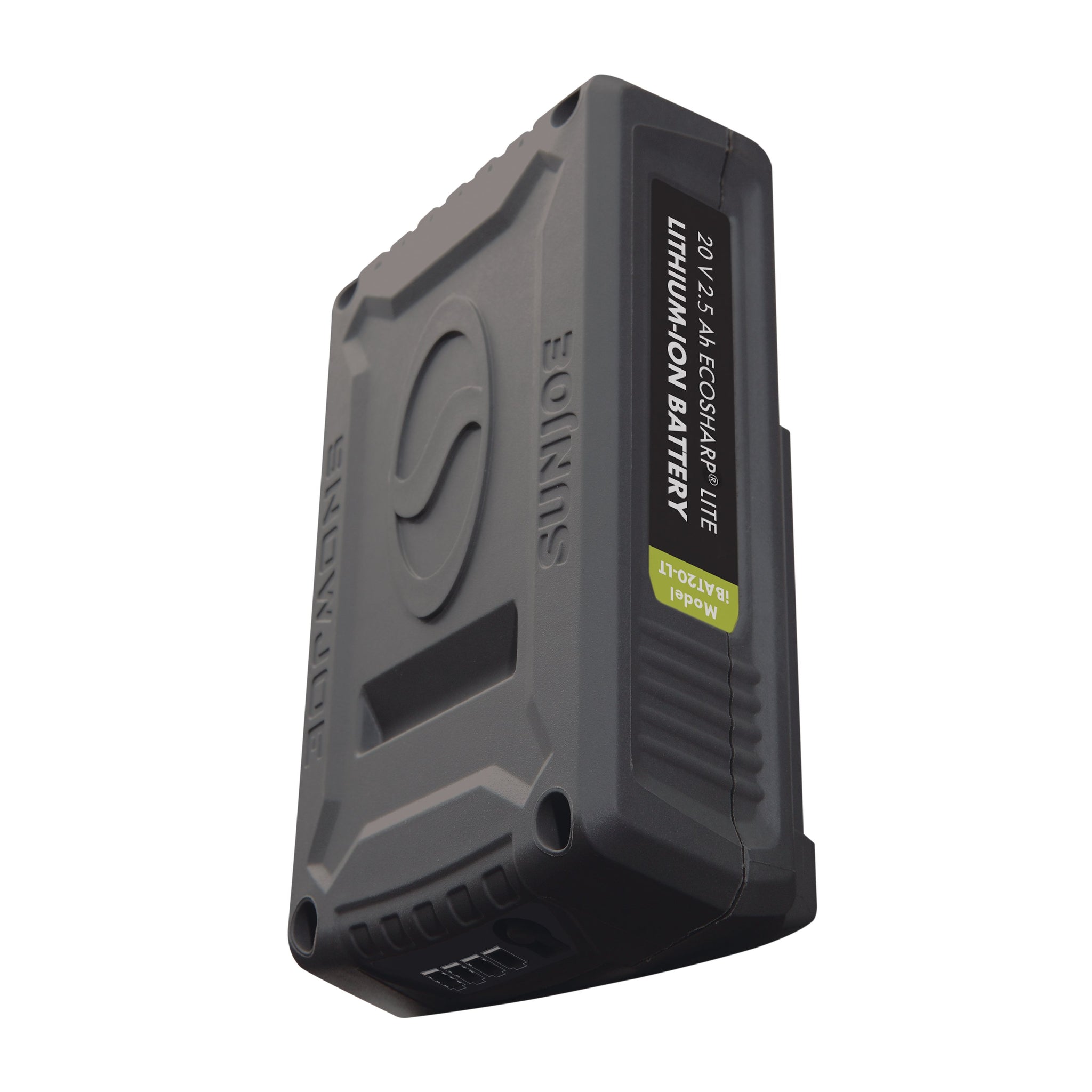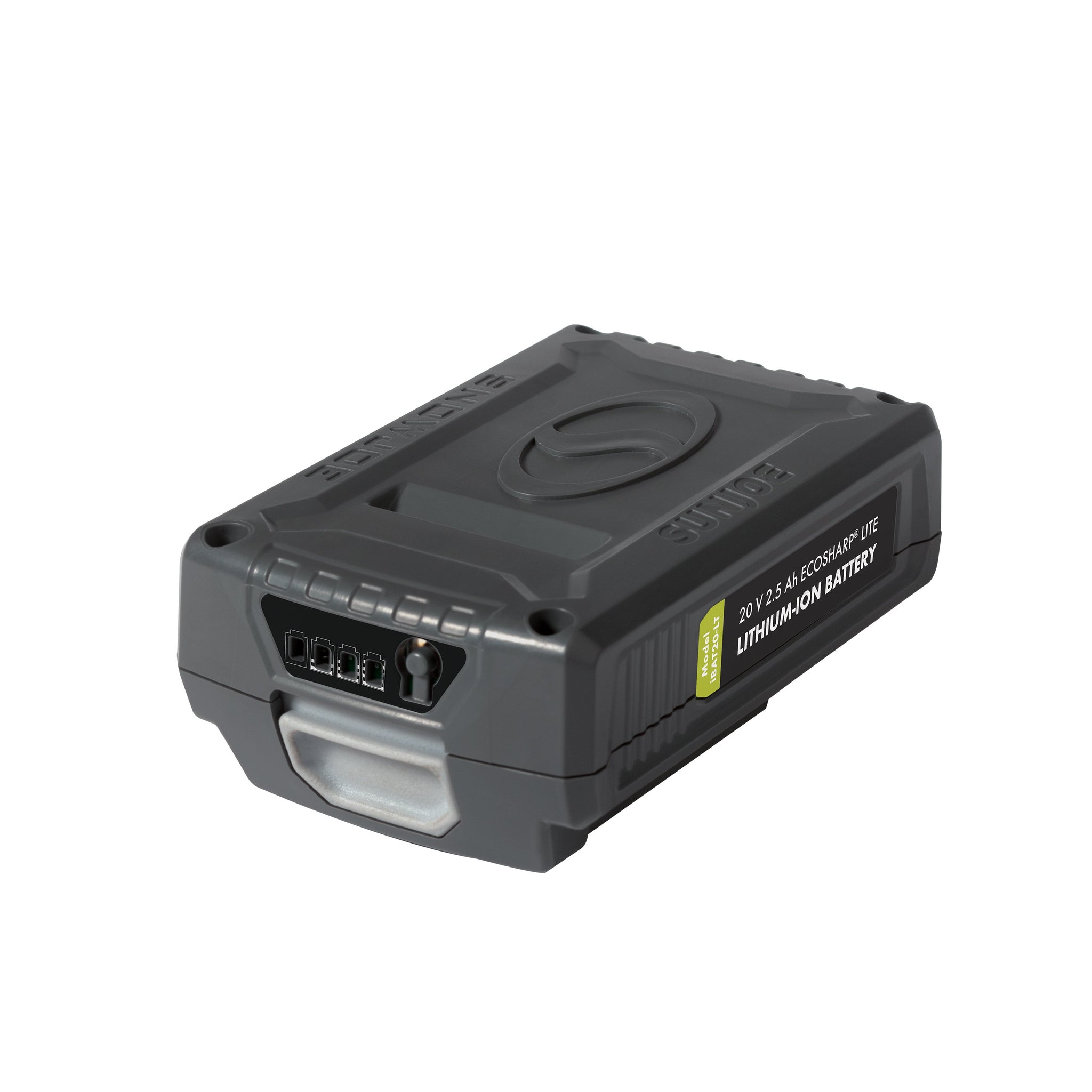 Power up. Power your cordless iON tools the eco-friendly way with the 20-volt EcoSharp™ LITE iBAT20-LT lithium-ion battery. Compatible with all Snow Joe® and Sun Joe® 20v models, the iBAT20-LT features high capacity 2.5 Ah lithium-ion cells that deliver no-fade power for maximum job performance. Simply insert the EcoSharp™ battery pack into your iON tool of choice and power up instantly without having to mess with gas, oil, pull-cords, or tangled extension cords! Breathe easily and confidently while working with your iBAT20-LT since this Energy Star-rated battery pack provides for cleaner, emission-free air during operation. Although run-times will vary depending on the tool used and the job performed, up to 50 minutes of whisper-quiet operation is a good approximation of what to expect from your iBAT20-LT-powered tool. The fuel gauge indicator lights on the EcoSharp™ will also let you easily monitor your battery’s charge capacity while it is in use.