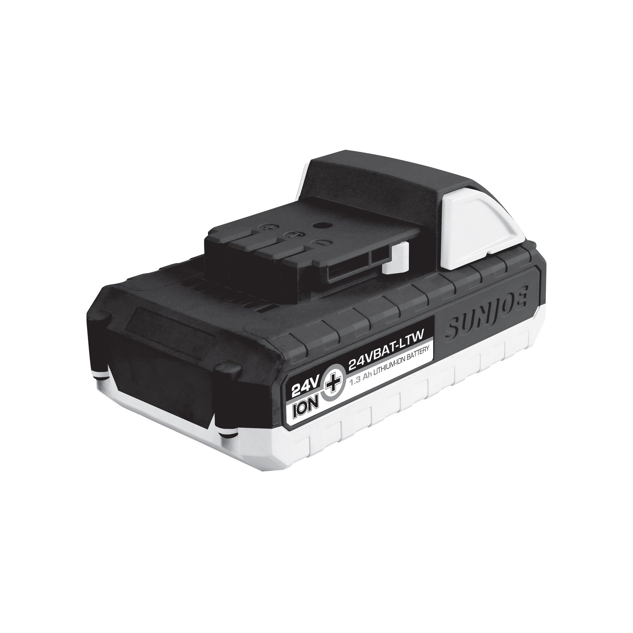 Power up. Power your cordless iON tools the eco-friendly way with the 24-Volt iON+ 24VBAT-LTW lithium-ion battery. Compatible with all Snow Joe® + Sun Joe® 24V iON+ models, the 24VBAT-LTW features high capacity 1.3 Ah lithium-ion cells that deliver no-fade power for maximum job performance.