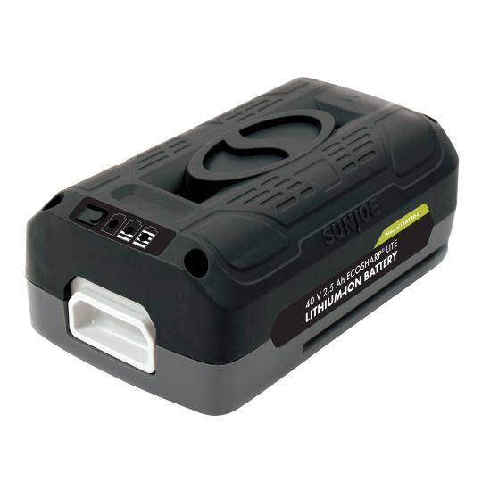 Power up. Power your cordless iON tools the eco-friendly way with the 40-volt EcoSharp™ iBAT40-LT lithium-ion battery. Compatible with all Snow Joe® and Sun Joe® iON models, the iBAT40-LT features high capacity 2.5 Ah lithium-ion cells that deliver no-fade power for maximum job performance. Simply insert the EcoSharp™ battery pack into your iON tool of choice and power up instantly without having to mess with gas, oil, pull-cords, or tangled extension cords! Breathe easily and confidently while working with your iBAT40-LT since this Energy Star-rated battery pack provides for cleaner, emission-free air during operation. Although run-times will vary depending on the tool used and the job performed, up to 25 minutes of whisper-quiet operation is a good approximation of what to expect from your iBAT40-LT-powered tool. The fuel gauge indicator lights on the EcoSharp™ will also let you easily monitor your battery’s charge capacity while it is in use. When it is time to charge, simply slide the iBAT40-LT into its dedicated iCHRG40 charger. Just like your cell-phone battery, the iBAT40-LT has no memory effect, so there is no need to drain the battery or wait for full charge before use. The iBAT40-LT holds its charge well in storage and will retain up to 65% charge for six months. Easy, convenient, reliable, and super-lightweight (only 1.7 lbs!), the 40-volt EcoSharp™ iBAT40-LT is the smart way to battery pack for your power trip.