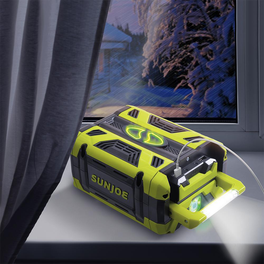 • Load image into Gallery viewer, Snow Joe + Sun Joe iON100V-5AMP Lithium-iON Battery | 100-Volt | 5.0-Ah | Dual USB Ports for Advanced Smart Phone Charging