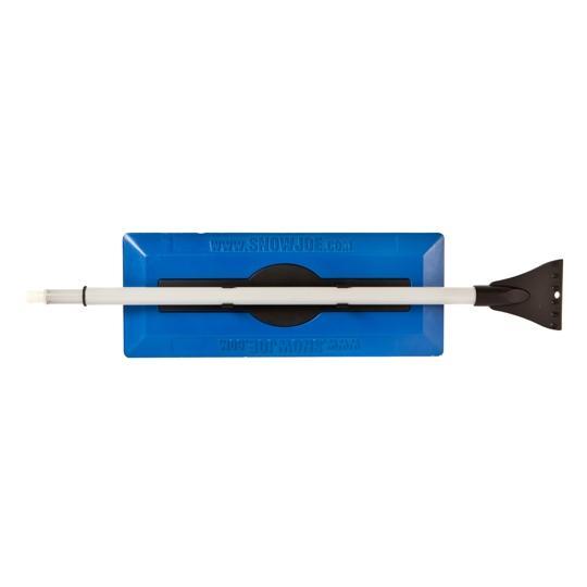 SNOW PROBLEM! The Snow Joe® Snow Broom model SJBLZD-RM makes quick work out of the snow piled on the roof, hood, trunk or windshield of your car. Its patented dual-purpose design features a broom head on one end and a built-in ice scraper on the other, so you can quickly push heavy, wet snow off your car, then clear away the ice build-up on your windshield with just one tool. Made with a durable, reinforced, non-abrasive foam head, the Snow Broom safely and effectively sweeps snow off your car without scratching the glass surfaces. Plus, its telescoping pole extends from 30 to 49 inches to provide maximum reach with minimal strain. Weighing only 1.2 pounds, the Snow Broom is super easy to handle and stores neatly inside the trunk of your car with its built-in bracket holder. GET EQUIPPED® this winter with the Snow Joe® Snow Broom and clear out fast from tough winter messes.