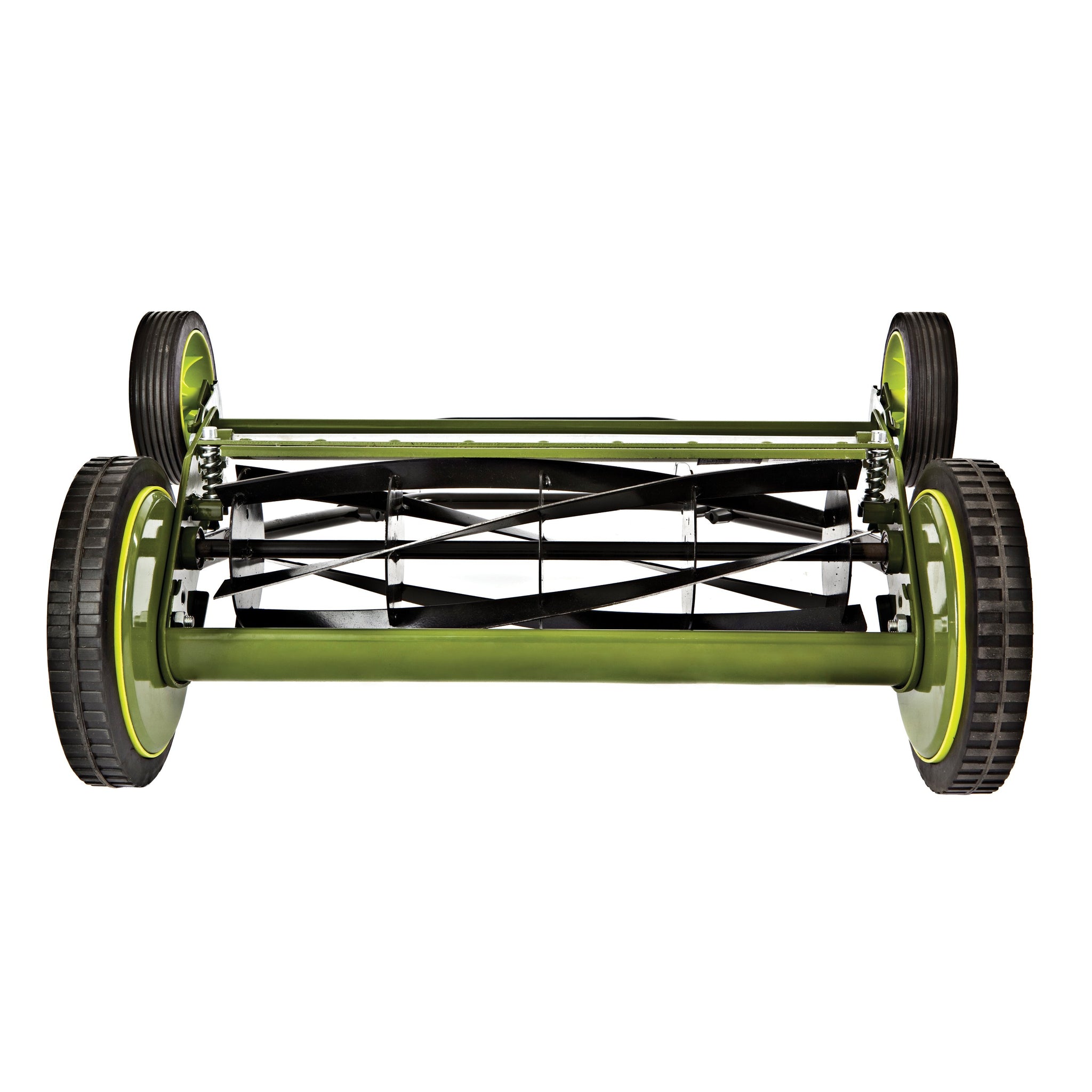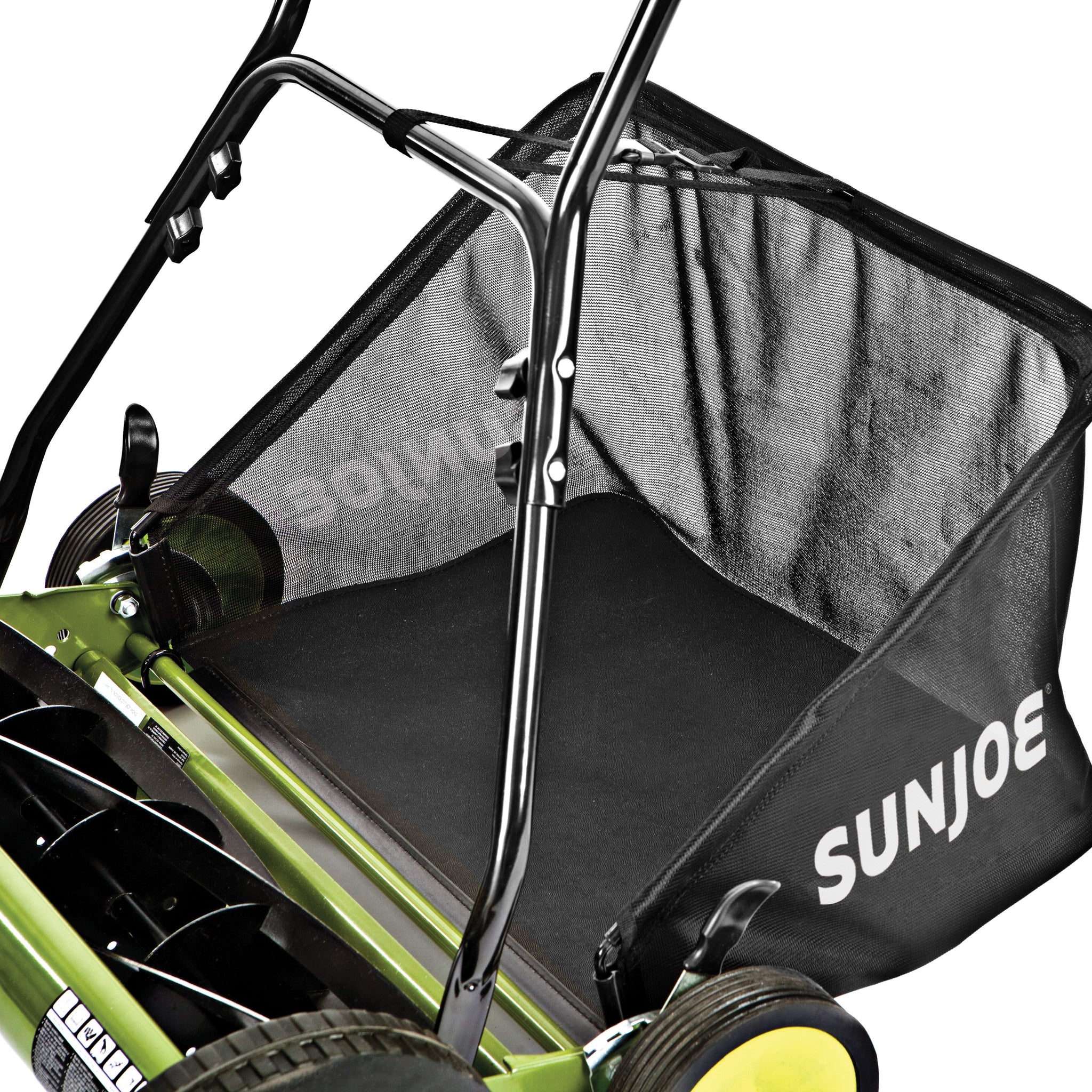 SEE JOE MOW. No messy gas; just an easy-to-use, lightweight, maneuverable and economical push reel mower. The Sun Joe MJ502M Reel Mower with Grass Catcher handles tough turf with ease and provides a quiet, eco-friendly solution for any lawn. The MJ502M comes with a handy rear collection bag to help keep your yard nice and tidy. Powered by you, the Sun Joe MJ502M has a 20-inch wide cutting path and a 9 position height adjustment lever. Tailor cutting heights up to 2.44-inch so you are in complete control of your grass. The mower’s dual wheel design and sharp harden steel blades ensures accuracy and cutting efficiency. The Sun Joe comes with a 2-Year full warranty.