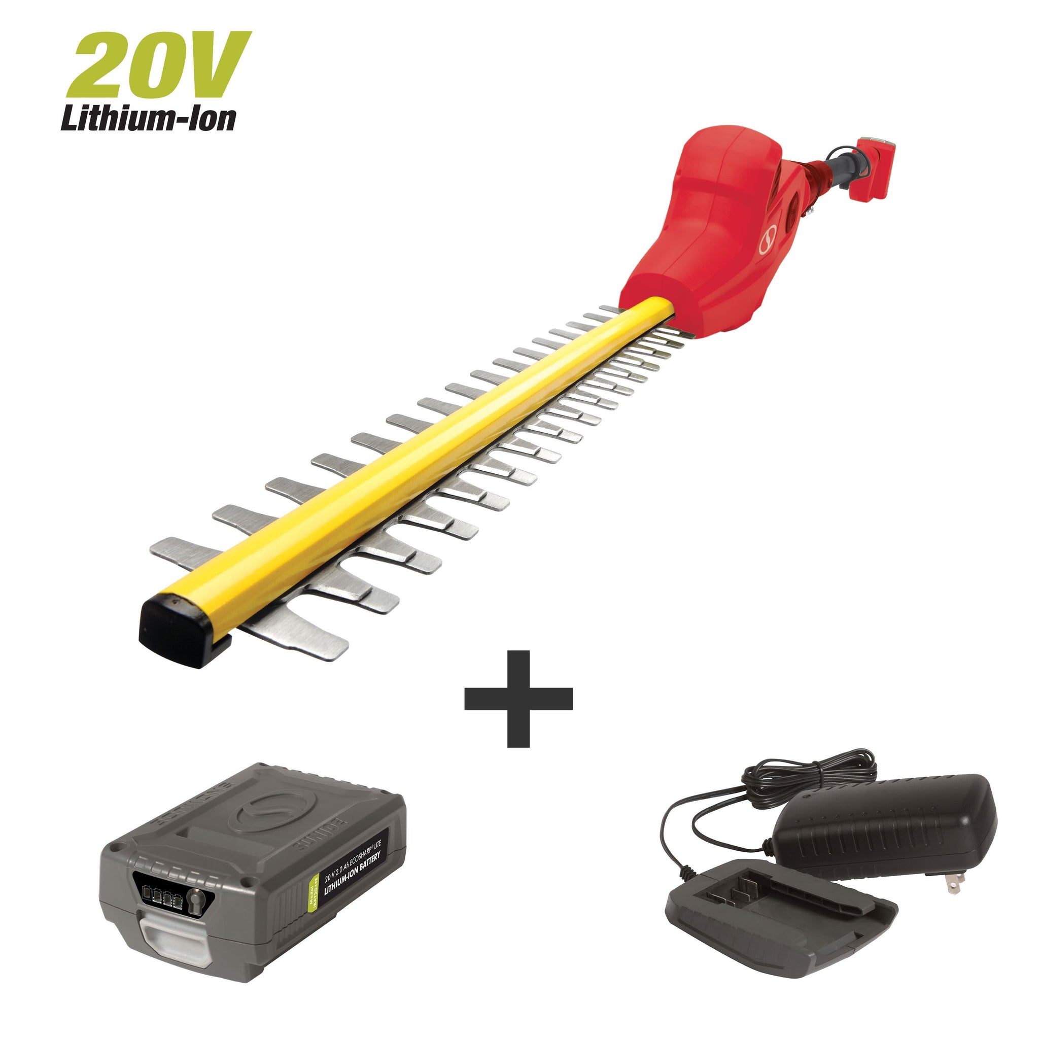 GIVE YOUR TALLEST HEDGES CLEAN CUT EDGES. Is your yard out of shape? Is your garden overgrown? Ditch the ladder and shape up the shrubs while you stand safely on solid ground with the SUN JOE 20ViONLT-PHT17-RED Cordless Telescoping Pole Hedge Trimmer. SUN JOE's 20 Volt 2.5 Ah EcoSharp rechargeable battery system makes it safe, simple and easy to conveniently clip tall bushes, and shear shrubs and hedges just beyond your reach. Plus, at just 8 lbs, it’s ideal for grooming in tight spaces where a traditional hedge clipper simply can’t cut it, like between the house and the hedges, beneath the bushes — or anywhere power is at a premium. Unlike gas powered tools, the 20ViONLT-PHT17-RED employs the most advanced lithium-ion battery technology to deliver up to 55 minutes of whisper-quiet, no-fade power with zero carbon emissions for cleaner air.