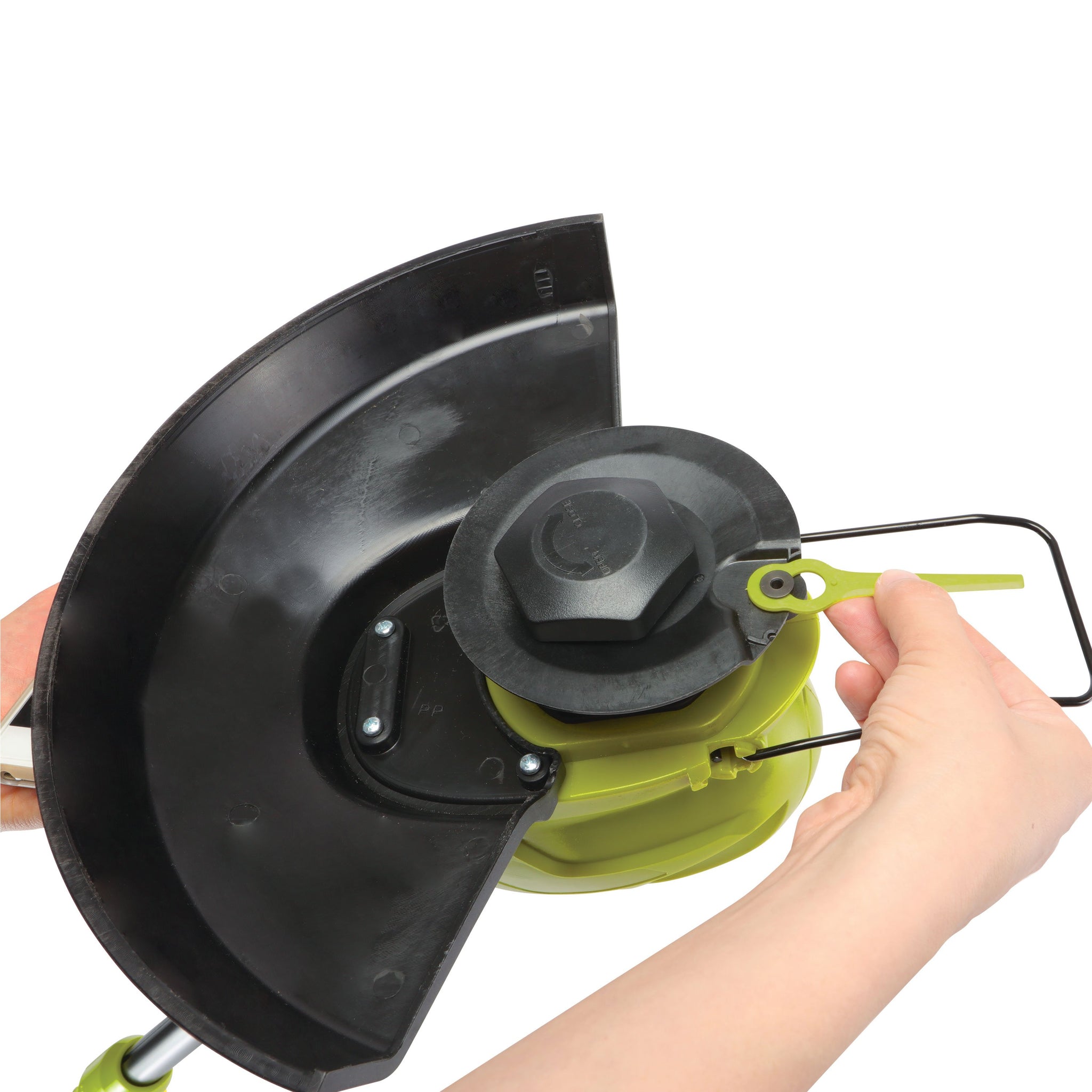 Or twist it up switch it up! The 180º rotating Twist-N-Groom head converts from trimmer to edger in seconds. Edge along flowerbeds, sidewalks, and walkways for a crisp, precise line — every time. Lightweight at under 6 lbs, SUN JOE features a. adjustable auxiliary handle and telescopic shaft which extends from 36.6" to 48.4” for maximum comfort and control.