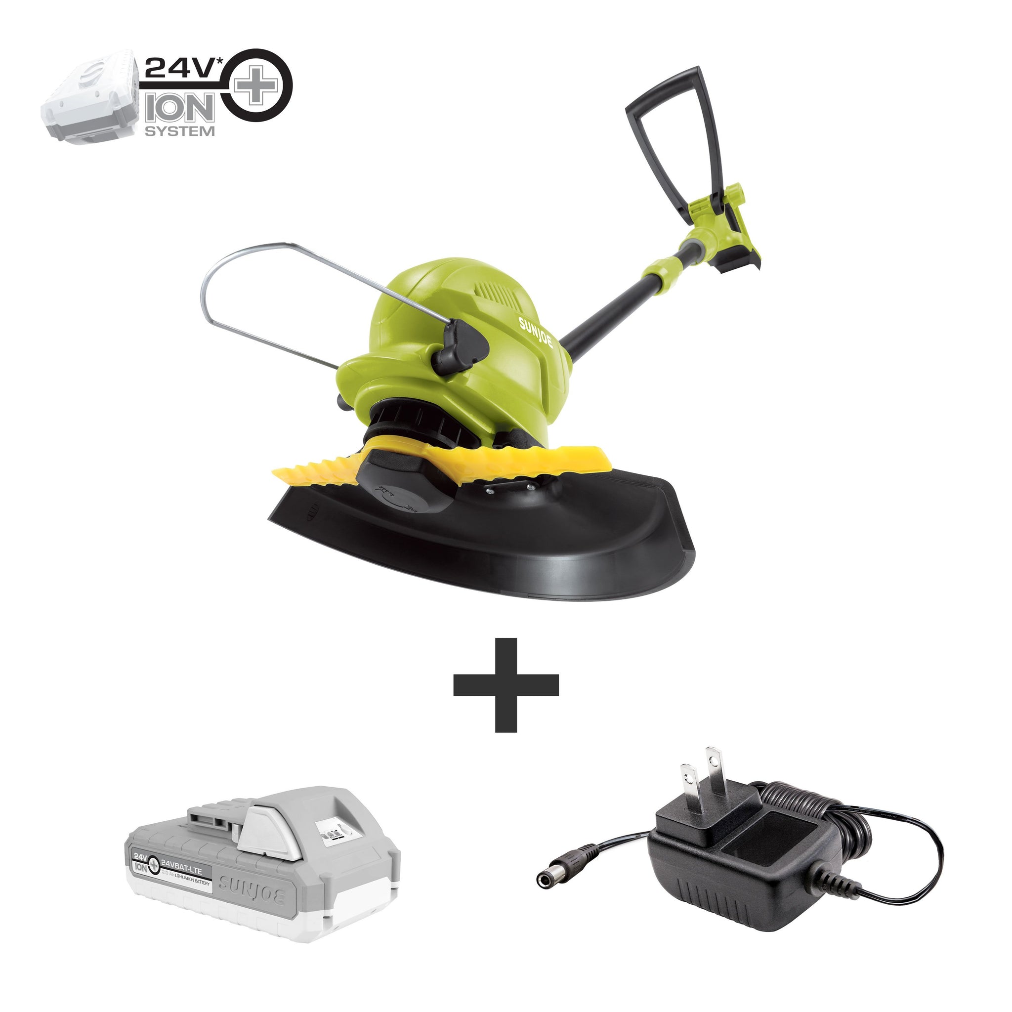 NO STRINGS ATTACHED. Say goodbye to tangled strings and extension cords with the next generation of grass-trimming tech: 24V-SB10-LTE 24-Volt Trimmer Edger from SUN JOE. Powered by SUN JOE’s exclusive, eco-friendly iON+ lithium-ion battery system, 24V-SB10-LTE provides up to 12 minutes of reliable, rechargeable no-fade power performance.