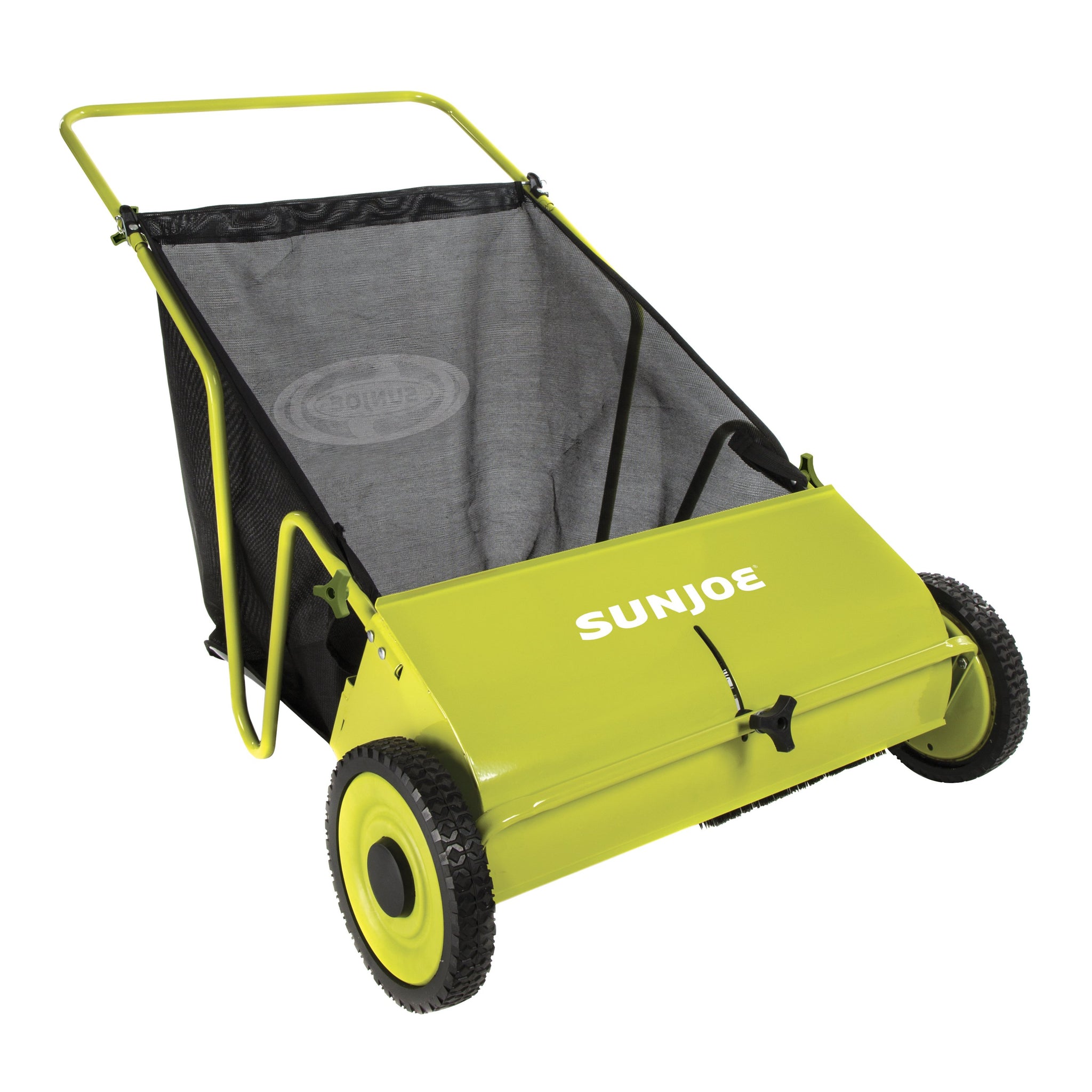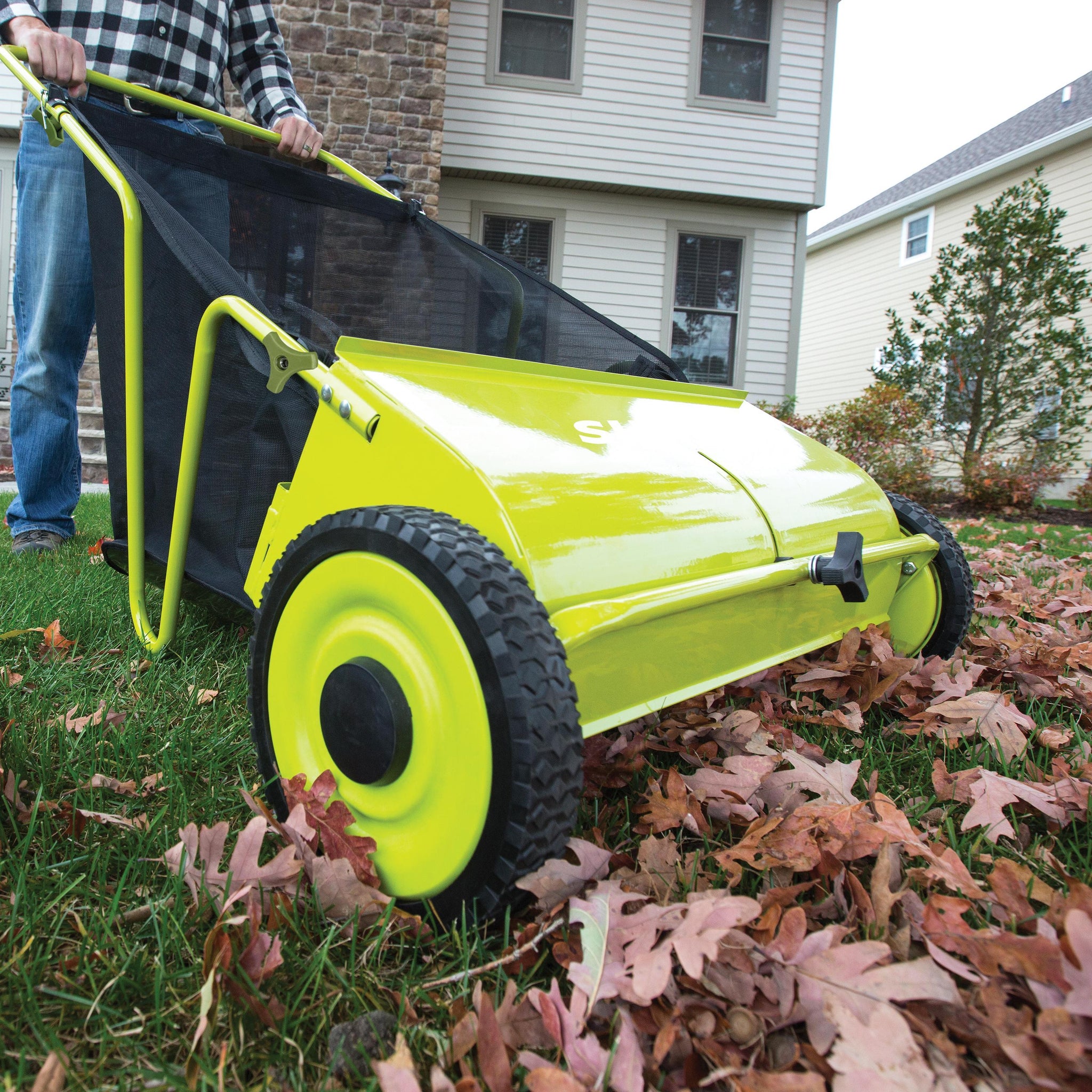 MAKE LIGHT WORK OF LOADS OF LEAVES. Make a clean sweep of your yard in next to no time with the Sun Joe® 26" manual push lawn sweeper. An extra large 26-inch sweeping width and four grabbing brushes tackle grass clippings, leaves, dirt and debris with ease. Quickly tailor the sweeper to suit the terrain with adjustable height control – ideal for transitioning from lawns to patios, sidewalks and driveways. The hefty 52.3 gallon collection basket detaches quickly for easy emptying so you can finish your lawn in less time. Crafted from durable, solid steel construction for reliable performance, season after season. Back-breaking leaf cleanups are a thing of the past; set the rake aside this year, and Go with Joe: the 26" manual push lawn sweeper from Sun Joe®.