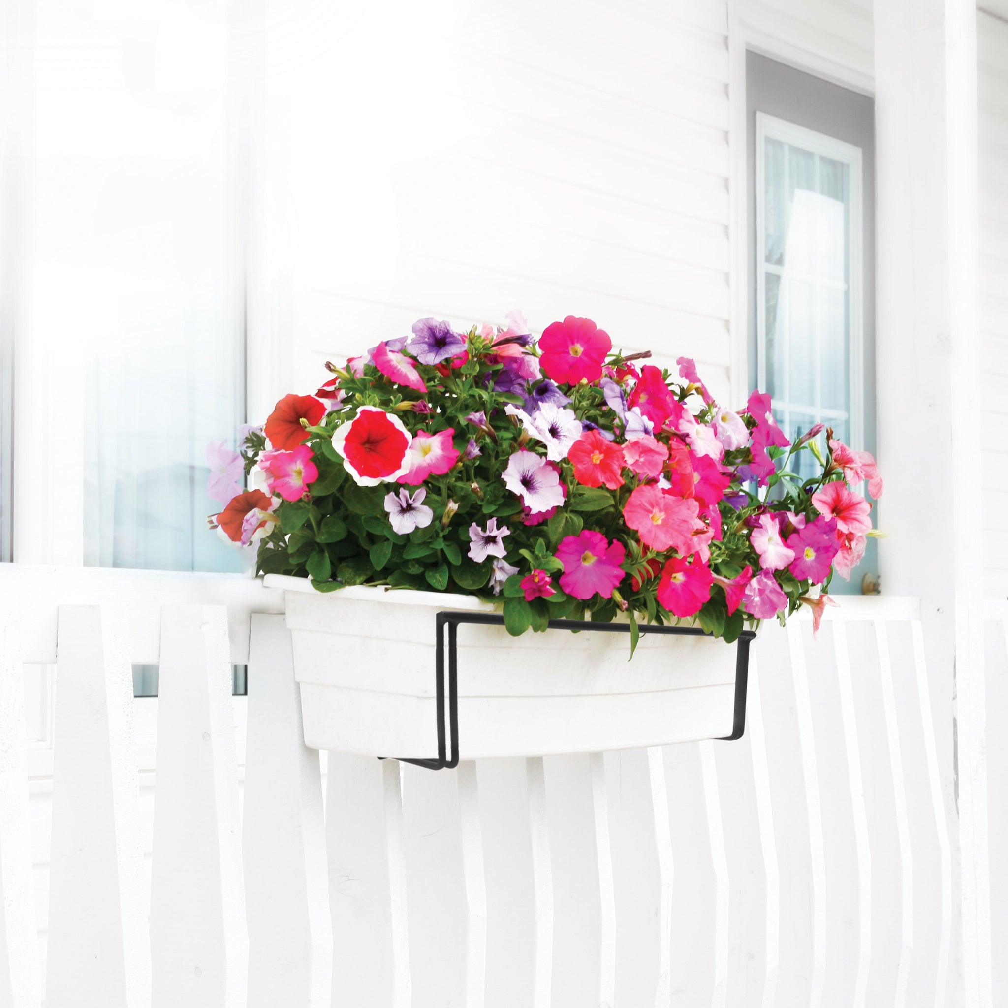 DECKED OUT WITH DECO JOE. Liven up your deck this spring with the Sun Joe® Deco Joe adjustable flower box holder. Designed to accommodate 3.5 to 5.5-inch deck railings, Deco Joe can hold flower boxes 7-inches wide by 18 to 36-inches long. Deco Joe makes it easy to hang and display your potted plants and blossoming flowers. Simply insert your flower box into Deco Joe’s secure base and hook it onto any deck railing from 3.5 to 5.5-inches wide to instantly beautify your deck, balcony, patio, porch, fence or trellis. Made of a durable rust-resistant material, Deco Joe weathers all kinds of weather for long-lasting wear through multiple seasons. Available in black or white, the Deco Joe adjustable flower box holder coordinates nicely with all outdoor décor. GET EQUIPPED® this spring with the Deco Joe adjustable flower box holder—an easy, versatile and affordable way to spruce up your outdoors.