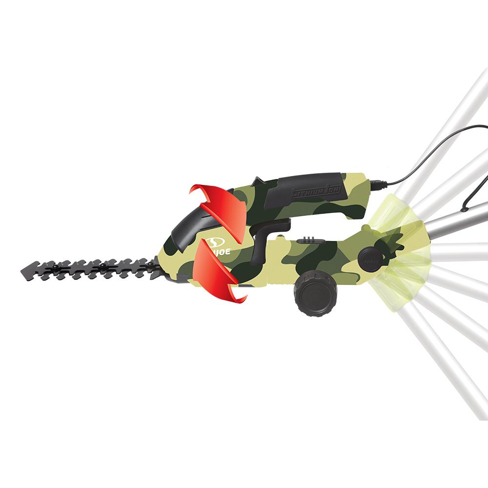 HEDGE HIGH, SHEAR LOW GIVE YOUR BACK A BREAK! Perfect for post-mowing touch ups in tight spaces, the Sun Joe HJ605CC 2-in-1 grass shear hedger with extension pole boasts a 7.2-volt long-life lithium-ion battery for hassle-free, cordless operation. Power up instantly with the push of a button and start shearing or shrubbing with cord-free convenience. Rechargeable battery power makes Sun Joe eco-friendly and maintenance-free, so you’ll be able to get the job done without having to worry about gas, oil, costly seasonal tune-ups or toxic hydrocarbon emissions. And because there’s a handy 3-foot extension pole, it’s even better for your back! No more bending, crawling or straining in pursuit of the perfect edge. Sun Joe connects quickly, and detaches easily when you’re done.