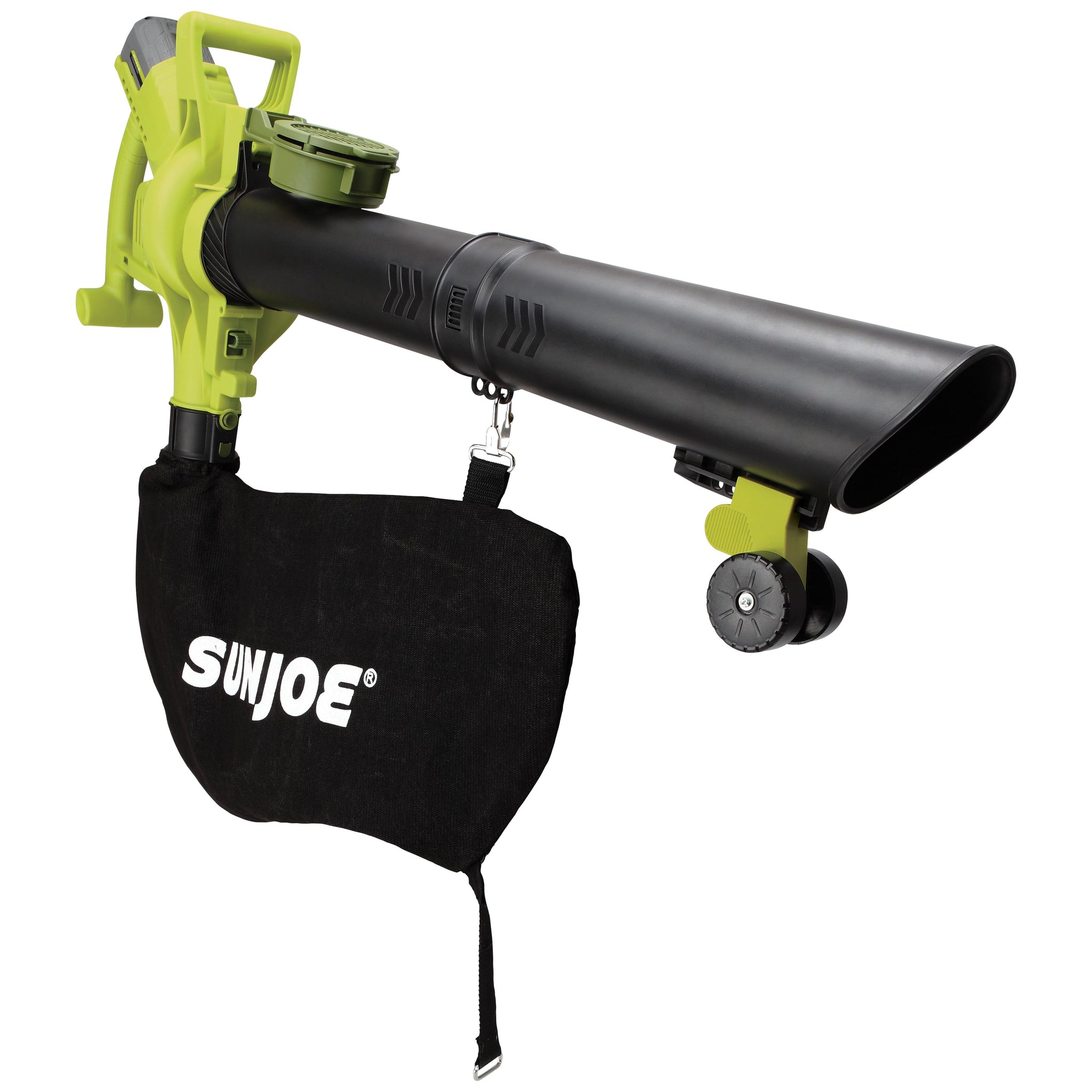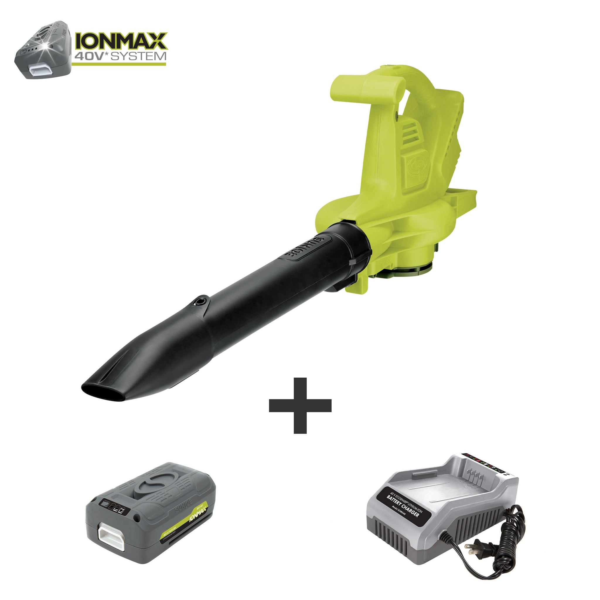WHEN LIFE GIVES YOU LEAVES, MAKE CLEANUP A BREEZE! Back-breaking lawn and leaf cleanups are a thing of the past with the Sun Joe iONBV, the revolutionary rechargeable blower/vacuum/mulcher. Lightweight, sleek and powerful, the 40 volt Lithium-Ion battery-powered blower packs the power of a hurricane into the palm of your hand to make your yard work a breeze. With up to 45 minutes of runtime, it’s just right for light-duty household applications like sweeping porches, patios, walkways, decks and garages – and even light snow! Six variable speed settings tailor the wind to suit the task with the flick of a switch. Featuring an interchangeable tube design and a hefty 16 gallon collection bag, iONBV easily converts from a robust 200 mph blower to a mighty mulcher with a superior 17:1 reduction ratio.