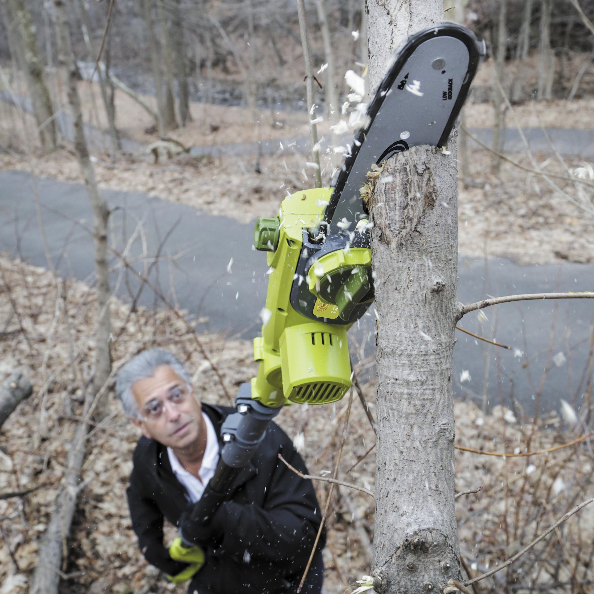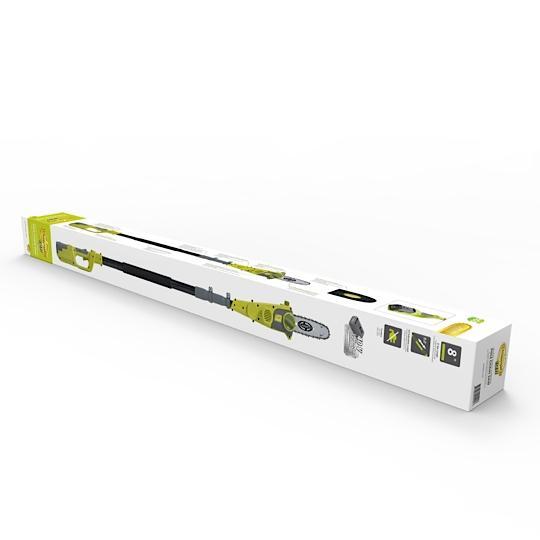 LET GRAVITY DO THE WORK™ The Sun Joe® iON8PS cordless pole chain saw makes it quick and easy to trim your overgrown trees. Powered by the same interchangeable 40 V EcoSharp® battery utilized by the other tools in the iON series, the iON8PS provides the cutting performance of a comparable gas- or electric-powered unit with the convenience and freedom of a lightweight (only 10.8 lbs!) cordless device. Operation is simple: SLIDE the telescoping pole (adjustable from 6.2 ft to 9.8 ft) to your desired length, ADJUST its 30º rotatable head to the optimal cutting position, PUSH a button to power on, and WATCH its 8-inch self-lubricating Oregon cutting bar and chain make quick work out of overhanging tree limbs up to 7.1-inches thick, all while you stand safely on solid ground!