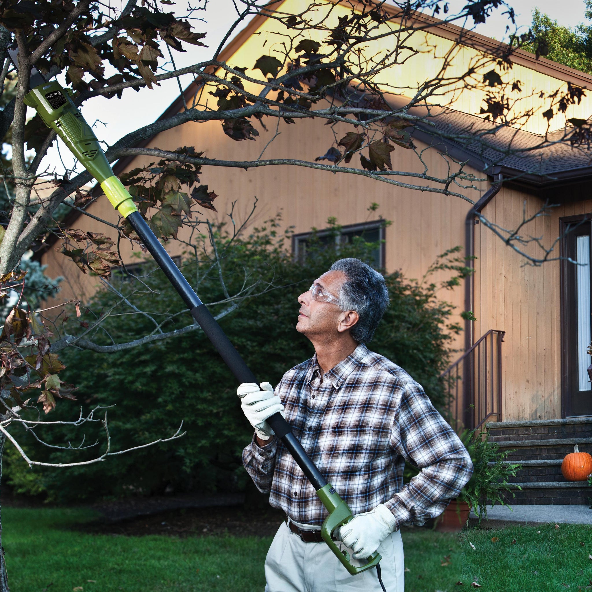 LET GRAVITY DO THE WORK™ The Sun Joe® Saw Joe SWJ800E-RM pole chain saw takes the danger and difficulty out of trimming your overgrown trees. Stand safely on solid ground while adjusting Sun Joe's telescoping pole. Pole extends to 8.7 feet to gain up to 15 feet of overhead reach!